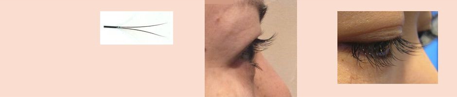 2本のエクステが根元で接着。" Y "字のような形で、毛先が広がった状態で付くので、まつげ1本にエクステ1本タイプより幅があるように付けられます。